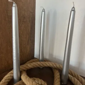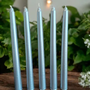 10’lu Varaklı Şamdan Mum Seti – Dekoratif, Kokusuz, Gümüş